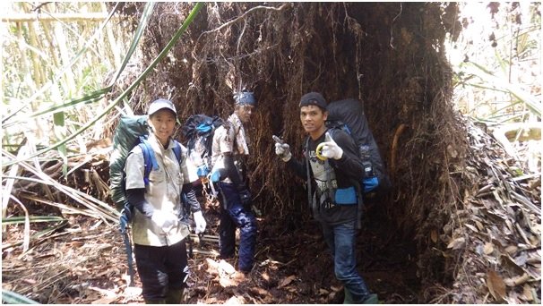 Tim kamera tangkap sedang melakukan pengecekan kondisi kamera-kamera yang sudah disebar di seluruh hutan.