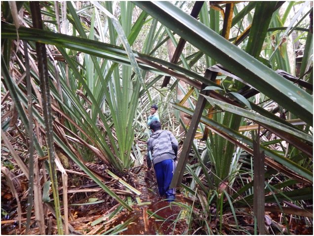 泥炭湿地の森林にトランセクトを引き、分け進んで行くのは、緩慢な作業です。
