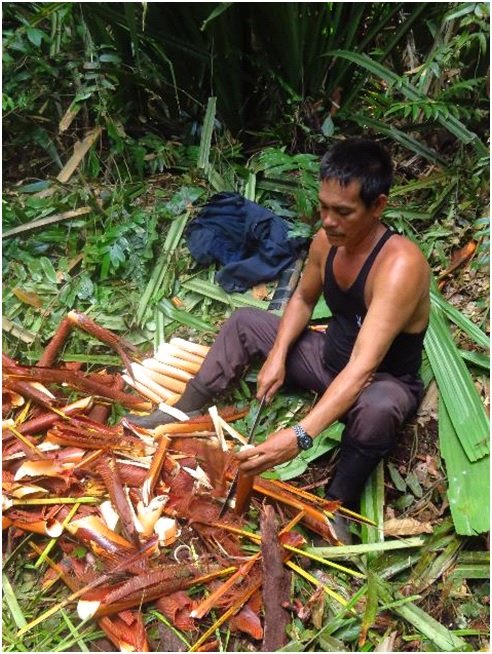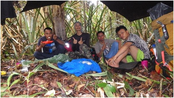 食事は大抵、米、小魚の干物、イワシや肉の缶詰、あるいは調理済みのルンダン(水分を飛ばしたココナツ・ミルク、チリパウダーやその他の香辛料でじっくり煮込まれた美味しい牛肉料理で、冷蔵しなくても長期保存が可能)です。朝には甘いコーヒーや紅茶がチームを元気づけます。おやつとしてキャンディー、具入りのチョコバーやヤシ糖もあります。夜明け前に起床して呼子鳥や動物の個体数調査を行わなければならないチームには、朝食前のクラッカーやクッキーが用意されています。